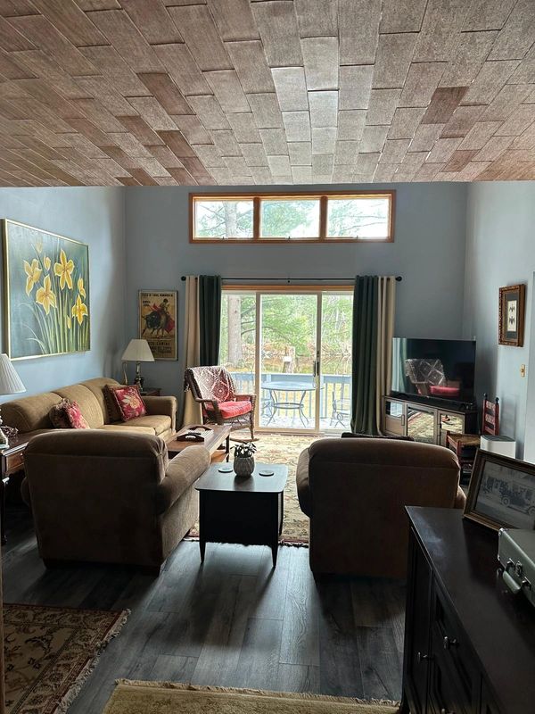 Relax and enjoy this peaceful home with waterfront views and nature all around. Spacious 2 bedroom 2 bath home with eat in kitchen, large deck, fire pit, large yard and pedal boat on 100' of the Black River known as Tower Pond.